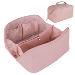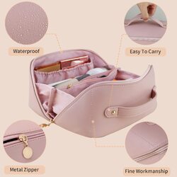 Large Travel Cosmetic Bag Portable Make up Makeup Bag Waterproof PU Leather Storage Pink