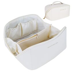Large Travel Cosmetic Bag Portable Make up Makeup Bag Waterproof PU Leather Storage White