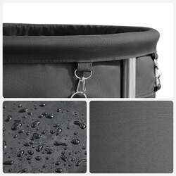 - Experience long-lasting durability with this laundry basket with wheels. Constructed with a powder-coated steel frame and 600D polyester fabric, this basket is designed to stand up to years of use.