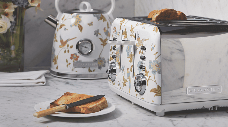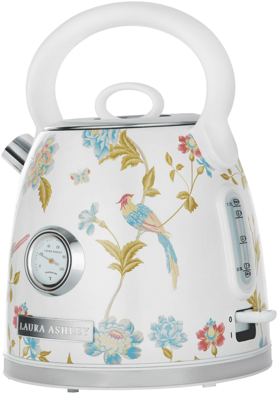 This Laura Ashley kettle's 1.7 litre capacity enables you to boil enough water to make multiple cups of cocoa or tea. It's made of stainless steel. The Laura Ashley SBEK858WS has a white finish, so you can select a colour that matches your kitchen. It's a smart pick for boiling plenty of water for afternoon tea.