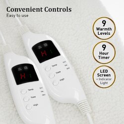 With its soft fleecy finish, this fitted electric blanket has 2 detachable multi-temperature controls. You and your partner can choose your own level of coziness with 9 temperature settings.