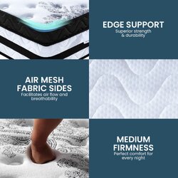 Pocket Springs follow the natural contours of your body for sublime comfort, reduces deformation and responds precisely to your every movement. Specifically zoned in 5 places to provide maximum support. It offers edge to edge support resulting in a larger sleep surface and ensuring this top quality mattress has a long life span.