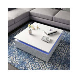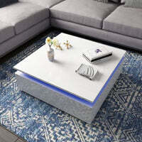 LED Lights High Gloss Coffee Table with Storage - White