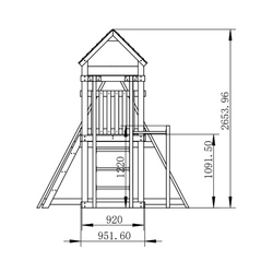 Keep your kids moving and their imagination flowing with the LSK Coburg Lake Play Centre. The fort's upper-level allows your kids to be the Kings and or Queens of their kingdom, while the mounted telescope allows them to keep an eye on their followers below. Down the slide, you will find an imaginative Cafe, take orders, set up your menu on the chalkboard, and serve your customers at the snack window. When all your customers are satisfied, wash up in the integrated and imagination filled play sink. When lunch is over, two belt swings, an Acrobat bar, and a slide will keep everyone moving and entertained for hours at a time.