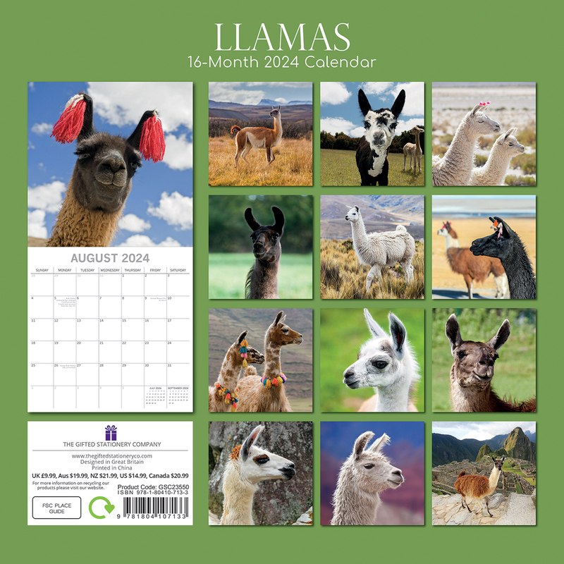 Llamas - 2024 Square Wall Calendar Pets Animals 16 Months New Year Planner Gift