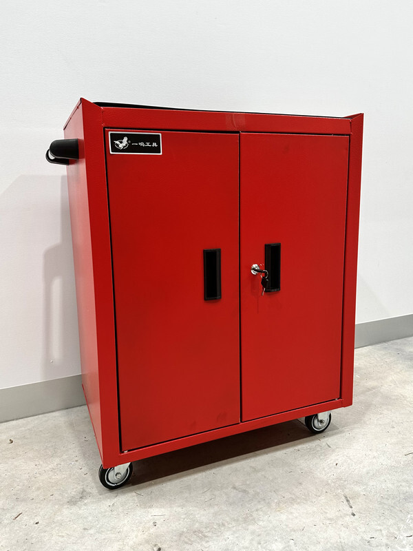Double door rolling cabinet garage three-tier toolbox is a convenient tool for moving many items.