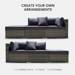 LONDON RATTAN 3 Seater Modular Outdoor Lounge Setting incl. Ottoman, Grey