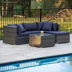 LONDON RATTAN 4 Seater Modular Outdoor Lounge Setting with Coffee Table, Ottoman, Grey