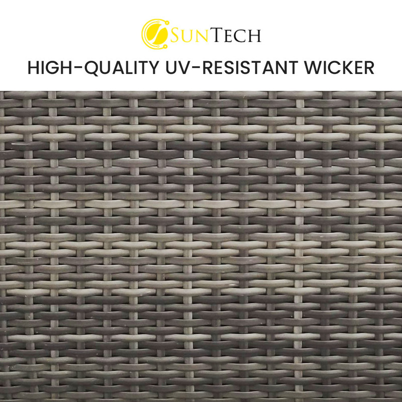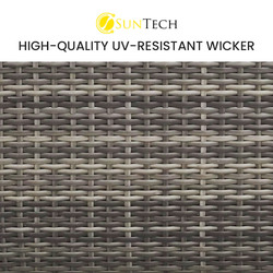 The set includes ultra-comfy 8cm thick water-resistant seat cushions, generous backrest cushioning and two throw cushions. The high-quality UV-resistant handwoven Suntech wicker in Marl Grey weave has a premium natural textured look. With a modular design comprising two sofas and two corner sofas, you can set it up in whatever configuration works best for you, making this London Rattan outdoor lounge setting a great addition to any outdoor space.