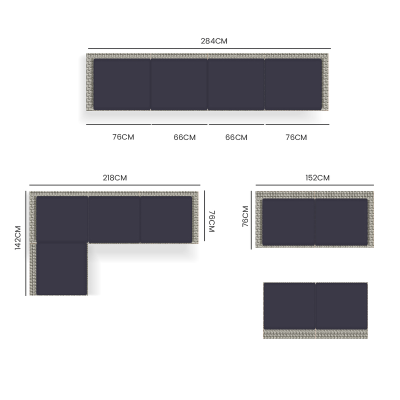 - Total Width: 284cm