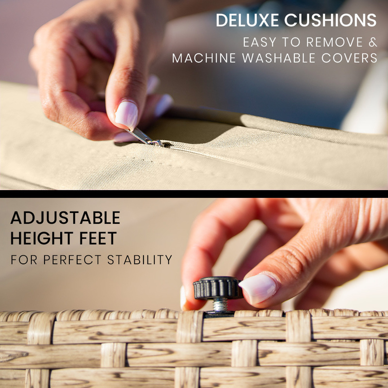 The Noosa Heads Collection Daybed is wrapped in a premium hand-woven SunTech resin wicker with an impressively natural look. The weave material is UV stabilised and up to 40% thicker than most others, ensuring it will continue to look as good as the day you bought it for many years to come. The Daybed features adjustable feet to offer stability and comfort..