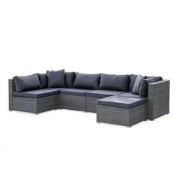 LONDON RATTAN 6 Seater Modular Outdoor Lounge Setting with Ottoman, Grey