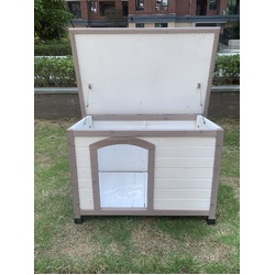 The interior is spacious, the entrance is wide and the entire kennel sits on an elevated floor that keeps ticks and fleas away from your pet. The roof can also be opened to air or clean the kennel if needed. Not least, the adjustable footing allows the kennel to be set on uneven ground without any issues.