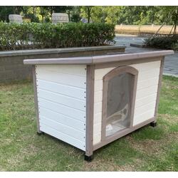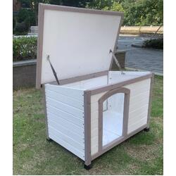 YES4PETS M Timber Pet Dog Kennel House Puppy Wooden Timber Cabin With Stripe White