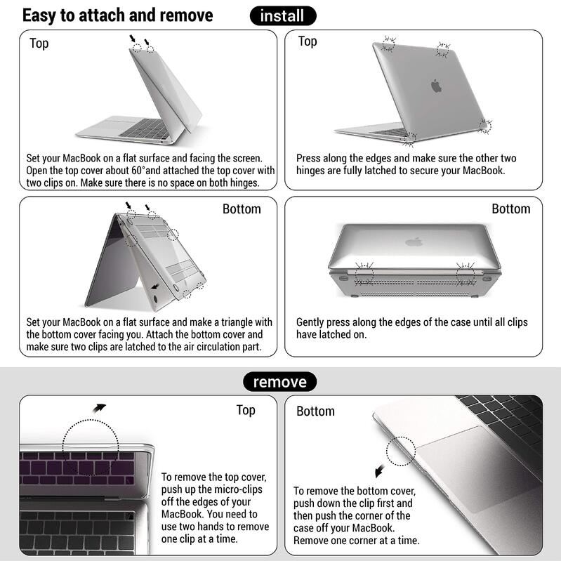 Easy Installation & Removal -Compatible with MacBook Air 13.3 Case - Our protective case has micro clips that securely fastens to your laptop, and snaps off with easy when needed.