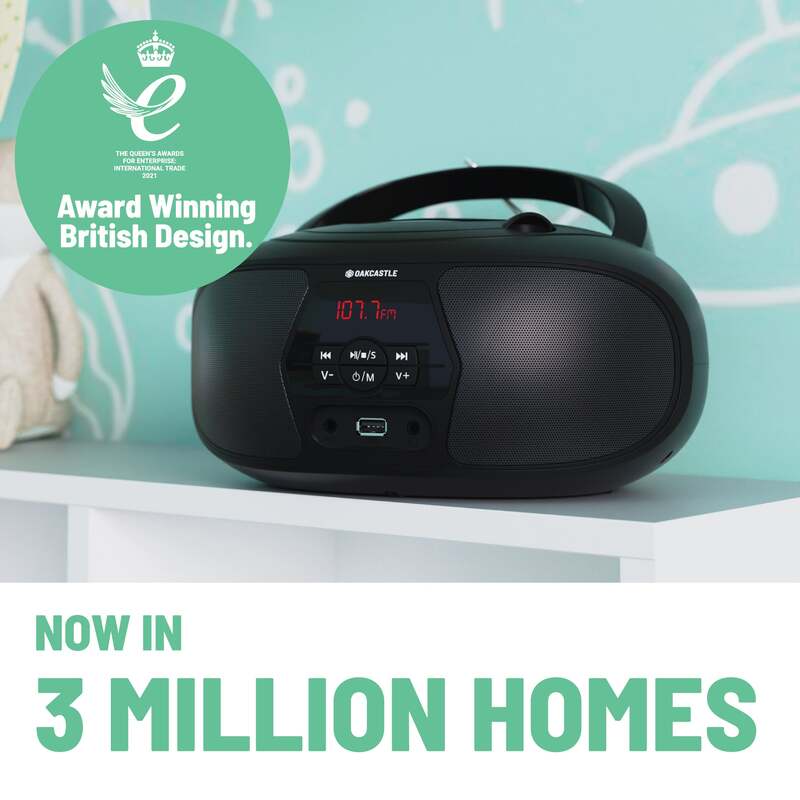 Majority Oakcastle BX200 Portable Bluetooth CD Player - Black - No matter what the occasion or the location, the Oakcastle BX200 combines versatility with performance and portability. Offering a wide variety of features including a CD player, Bluetooth, FM radio and more, the BX200 lets you listen to all your favourite songs and stations in amazing stereo sound. The BX200 also comes with a handy carry handle and battery compartment so you can take it with you anywhere. The Oakcastle BX200 comes with a whole-host of playback functions and features so you can enjoy your music however and wherever you like. Flip open the top and insert one of your favourite CDs, plug and play from your media devices with the USB and AUX ports or control the tunes remotely with the built-in Bluetooth. The BX200 also comes with FM radio for even more listening choice.