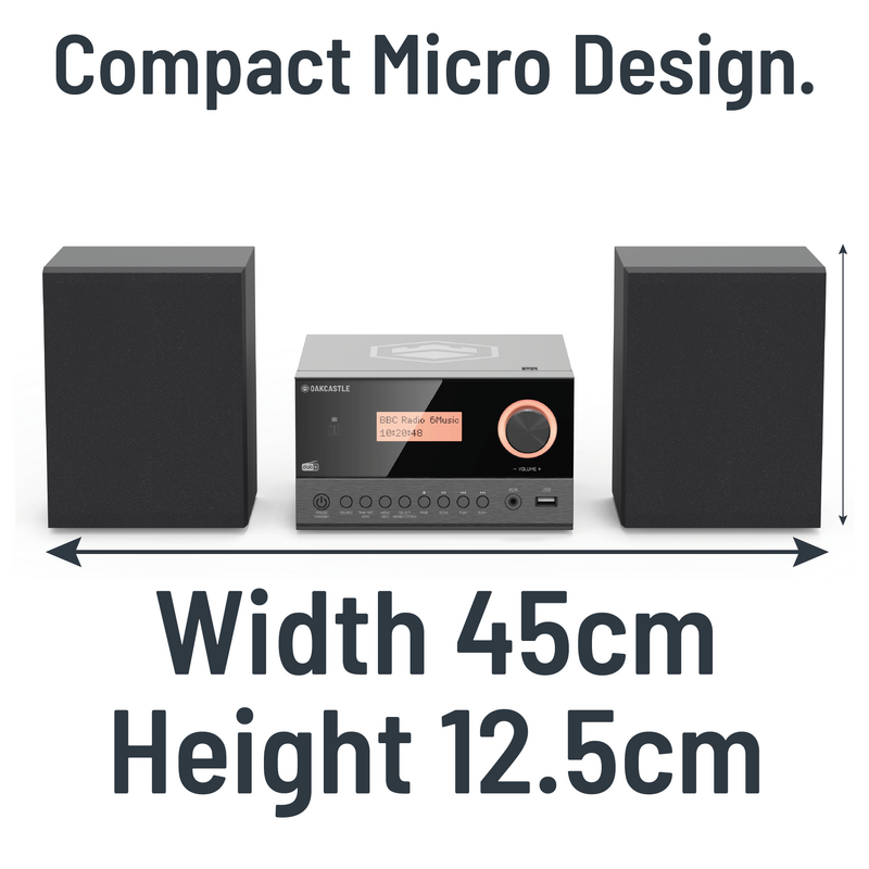 COMPLETE HOME MUSIC SYSTEM - The Oakcastle Hifi200 is designed in the UK by a group of audio experts. The micro hi-fi stereo system features a powerful pair of self-contained 2.0 stereo speakers capable of producing 60 watts. Our audio system features the latest in audio technology and is compatible with household items like your phone, tablet, MP3 or PC. Digital sound quality is designed, tested and perfected in Cambridge, UK.
