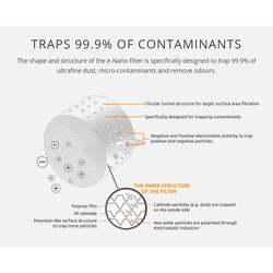 This is all thanks to its powerful e-Nano filter that efficiently clears the air of airborne allergens and pollutants as small as 0.03 micrometers in size.