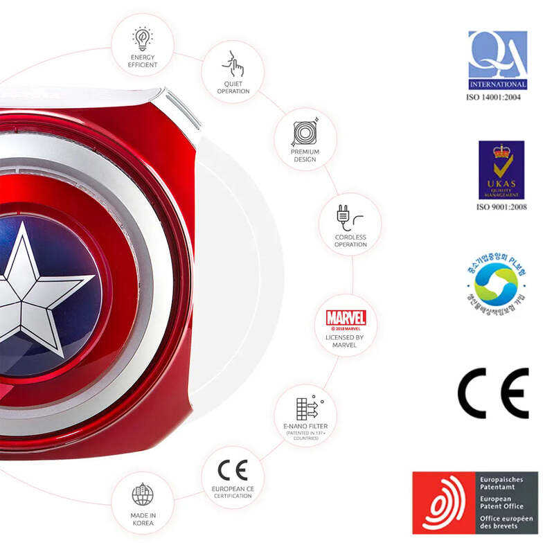 The Marvel Habanero 2 range of cordless air purifiers are designed to be compact and portable while maintaining its air purifying power. Don't be fooled by their small statures - these superhero air cleaners provide strong and efficient air purification performance with dual front and back e-Nano air filters that can clean the air of pollutants as small as 0.03 micrometers including super fine dust, carbon monoxide, cigarette smoke, vehicle exhaust fumes, pollen, mould, viruses, allergens, bacteria, and Volatile Organic Compounds (VOCs) such as formaldehyde, toluene, and benzene.