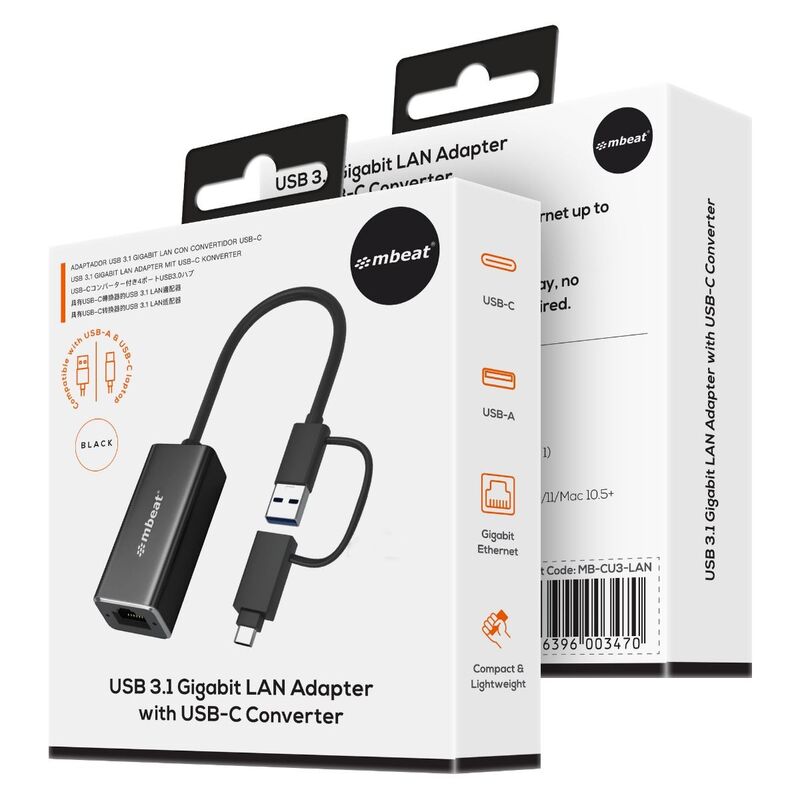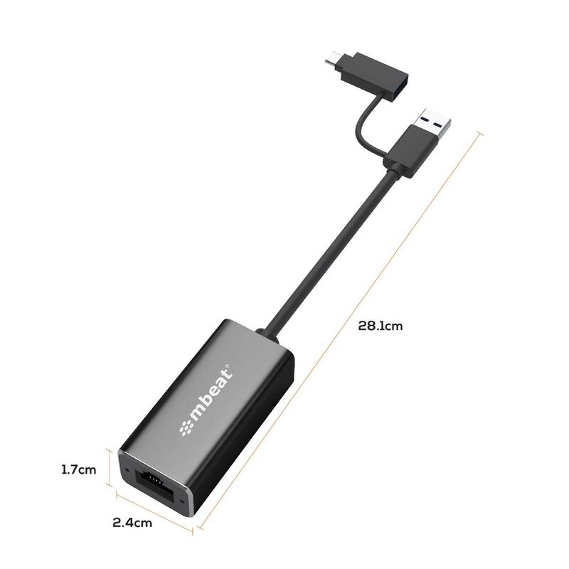 mbeat 2-in-1 USB 3.1 Gigabit LAN Adapter with USB-C Converter