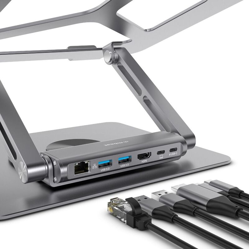 mbeat Stage S12 Rotating Laptop Stand with USB-C Docking Station - Space Grey