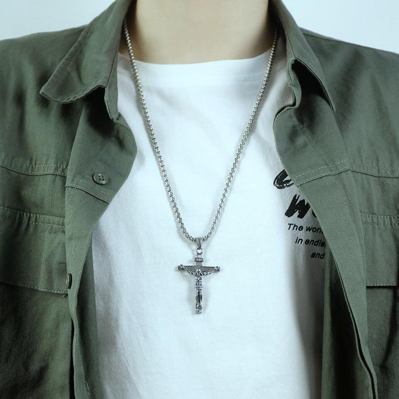 Men Stainless Steel Gold Silver Black Jesus Crucifix Pendant Chain Necklace