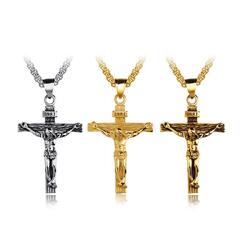 Men Stainless Steel Gold Silver Black Jesus Crucifix Pendant Chain Necklace