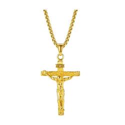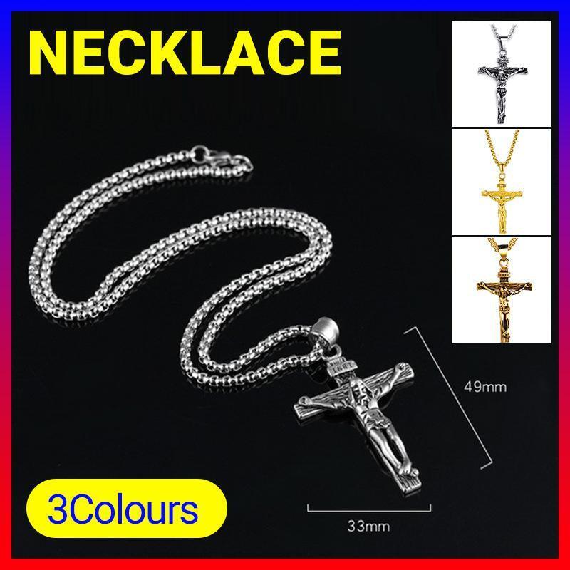 Men Stainless Steel Gold Silver Black Jesus Crucifix Pendant Chain Necklace