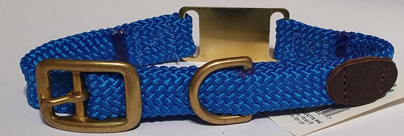 Mendota Products - ID Junior Dog Collar with Brass Tag - SIZES: 35CM, - Made in the USA - Blue