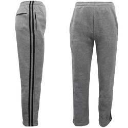 Men's Fleece Casual Sports Track Pants w Zip Pocket Striped Sweat Trousers S-6XL, Grey, L