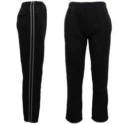 Men's Fleece Casual Sports Track Pants w Zip Pocket Striped Sweat Trousers S-6XL, Black w Grey Stripes, 5XL