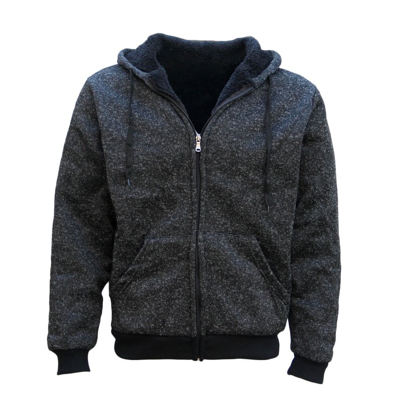 Men's Thick Zip Up Hooded Hoodie w Winter Sherpa Fur Jumper Coat Jacket Sweater, Black, L