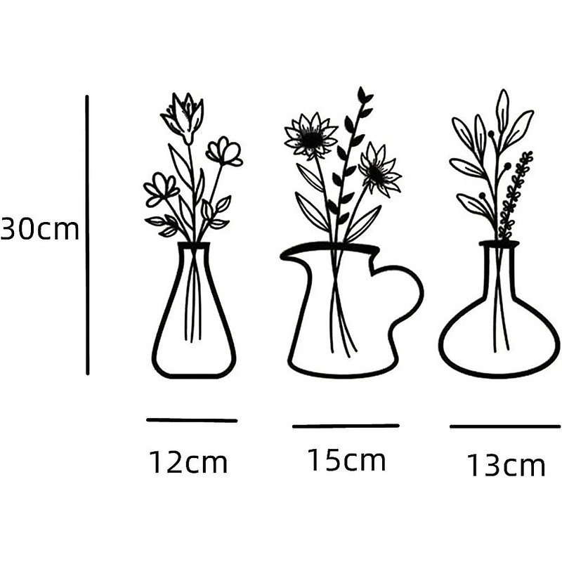 Upon acquiring this set, you'll receive three individual metal vase flower wall art pieces. Each vase showcases a unique assortment of flowers, with multiple blooms and corresponding leaves. This thoughtful arrangement prevents any sense of isolation or monotony within the decoration.