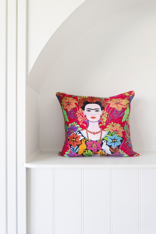 Mexican Painter Pillow Case, Frida Floral Decorative Cushion, Mexican Painter Art Garden Country Cushion Cover - Red Frida Face
