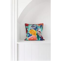 Mexican Painter Pillow Case, Frida Floral Decorative Cushion, Mexican Painter Art Garden Country - TURQUOISE ANTHRO FLORAL