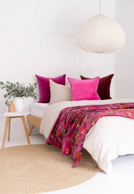 This soft plush velvet throw reverses to equally soft cotton fabric. The light weight throw is precisely made giving each throw a unique texture and tonal look. Reverses to plain cotton fabric at the back. Each throw is pre-washed for a natural and soft look. This cozy cotton velvet throw can be used as a bedspread, coverlet or blanket all year long.