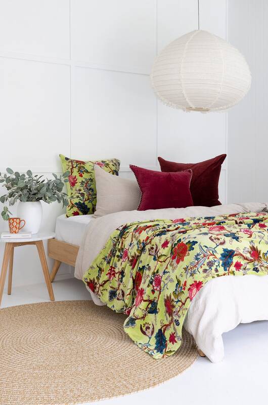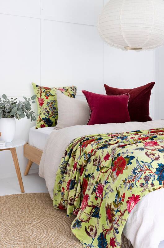 This soft plush velvet throw reverses to equally soft cotton fabric. The light weight throw is precisely made giving each throw a unique texture and tonal look. Reverses to plain cotton fabric at the back. Each throw is pre-washed for a natural and soft look. This cozy cotton velvet throw can be used as a bedspread, coverlet or blanket all year long.