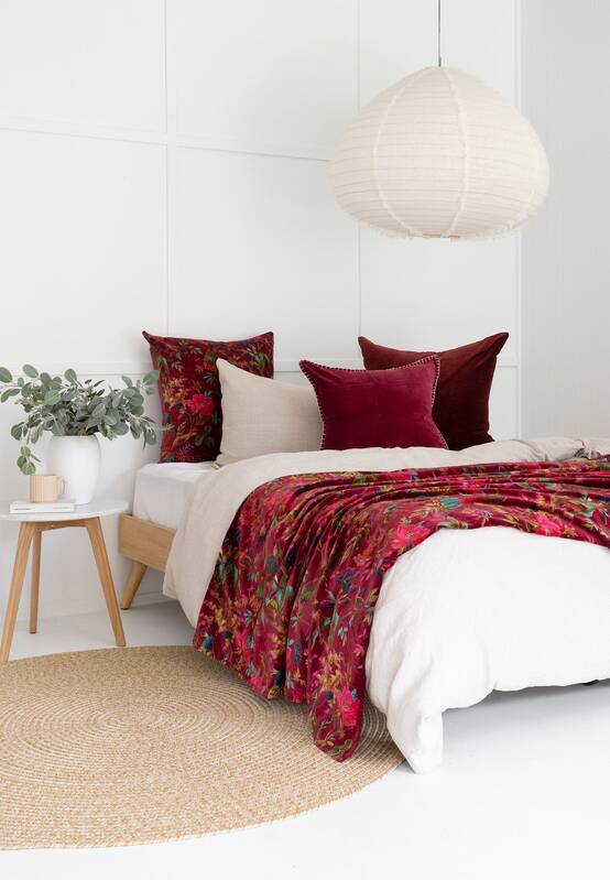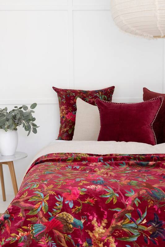 This soft plush velvet throw reverses to equally soft cotton fabric. The light weight throw is precisely made giving each throw a unique texture and tonal look. Reverses to plain cotton fabric at the back. Each throw is pre-washed for a natural and soft look. This cozy cotton velvet throw can be used as a bedspread, coverlet or blanket all year long.