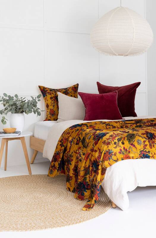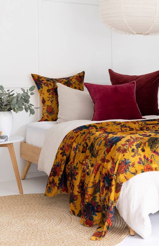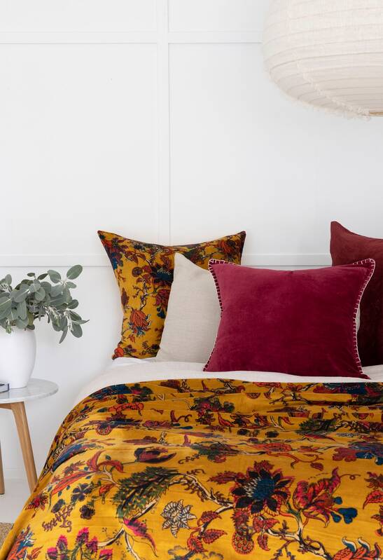 This soft plush velvet throw reverses to equally soft cotton fabric. The light weight throw is precisely made giving each throw a unique texture and tonal look. Reverses to plain cotton fabric at the back. Each throw is pre-washed for a natural and soft look. This cozy cotton velvet throw can be used as a bedspread, coverlet or blanket all year long.