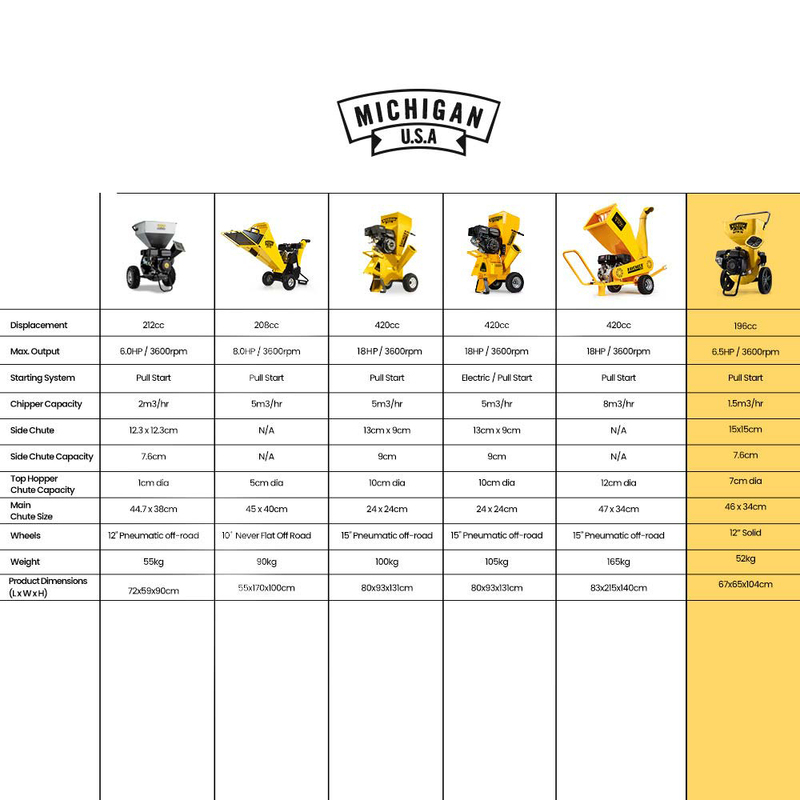 MICHIGAN Wood Chipper Petrol Garden Shredder Mulcher with 6.5HP Kohler RH265 Engine