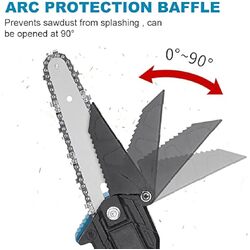 - ??ightweight & Humanized Design??his mini chainsaw weighs 0.72kg/1.58lbs(Excluded battery) and the total length is only 39cm/15.35 in. Women can also easily control and use it, and long hours of work will not be tiring. The guide plate of this mini chain saw is resistant to high temperatures and it can quickly dissipate heat. It also resistant to falling and abrasion.