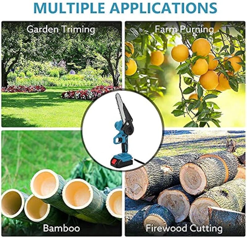 - ??ide Application??ur cordless chainsaw is very suitable for gardening pruning, bush pruning, small branch pruning, woodcutting, It is widely used in gardens, parks, farms, pastures, orchards and greenhouses. Perfect tree pruner. (Please make sure the chain is tightened before use.)