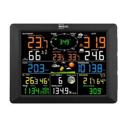 - Color Display LCD Screen: Displays wind speed and direction, dewpoint, rainfall, indoor outdoor temperature and humidity, barometric pressure, moon phase, solar radiation and UV.