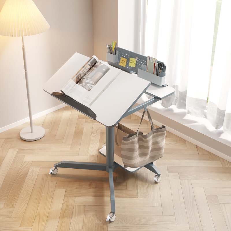 Mobile Home Office Sit and Stand Desk With Tilting Desktop
