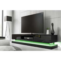 Modern High Gloss LED RGB TV Entertainment Unit with Storage 220cm - Black