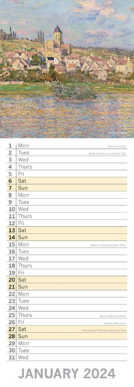 Monet - 2024 Slimline Slim Wall Calendar Hanging Planner New Year Gift
