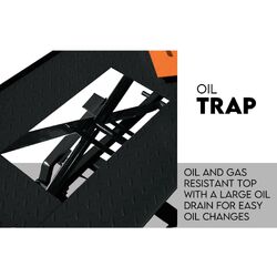 The textured surface of this scissor lift helps prevent slippage for a safe working environment. Likewise, the ramp secures the bike in an upright and stable position.