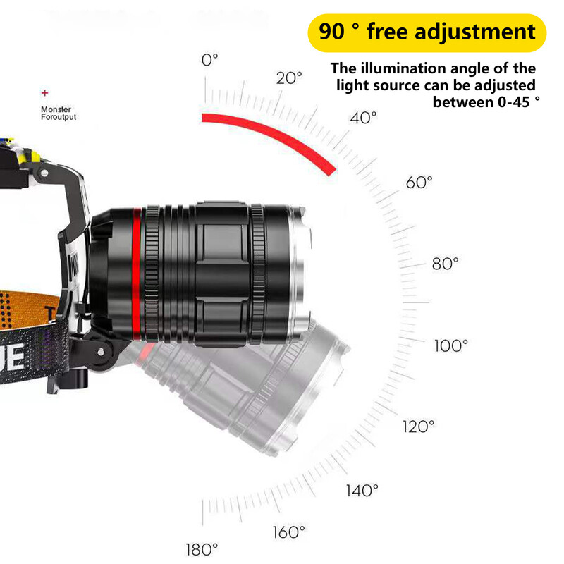 The LED Headlamp, a convenient and efficient lighting solution for all your needs. This head torch lamp is designed for ultimate versatility, with its rechargeable design, you'll never have to worry about replacing batteries again. The LED headlight is perfect for a variety of activities including camping, hiking, reading, and more. With its lightweight construction, you'll find it comfortable to wear for extended periods of time