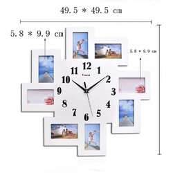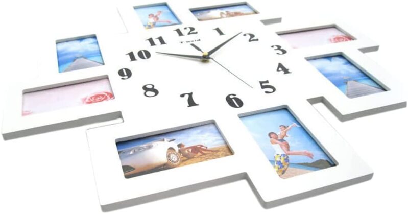 Multi Photo Frame Modern Wall Clock, White Color, Modern Design