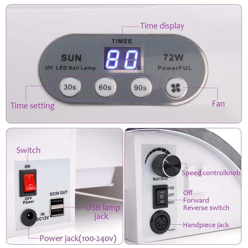 Multifunction Nail Drill Art Salon Nail Lamp Nail Vacuum Cleaner Nail Dust Collector Machine